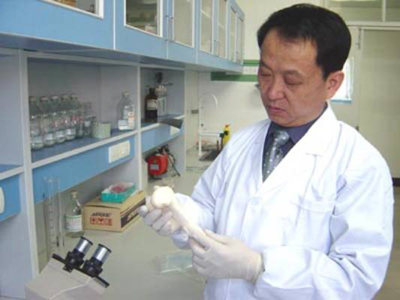 李寶興和同事們反復試驗,尋找臨床試用出現(xiàn)不良癥狀的原因,結果發(fā)現(xiàn),主要是因為原材料中的蛋白質等的留存度過高。找到問題就可以對癥下藥了,怎樣才能使這些物質的留存度最少呢?清洗是核心技術,怎樣洗、洗幾遍才能洗干凈而不會損壞原有材料的骨結構?李寶興和同事們反復試驗,反復清洗,終于掌握了一套不同時長、不同水流清洗的技術。